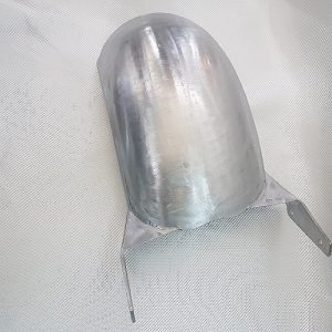 Das Kit beinhaltet den Stahlfender mit GFK-Sitzschale, Spritzschutz und Befestigungscover.